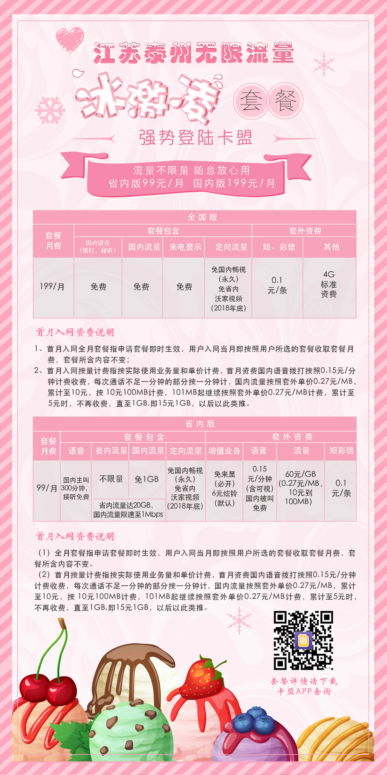 江苏泰州无限流量冰激凌套餐 强势登陆卡盟 2018-04-04 18:15:31 江苏泰州无限流量冰激凌套餐 强势登陆卡盟 流量不限量 随意放心用 省内版99元/月 国内版199元/月 套餐详情请下载远特卡盟APP查询