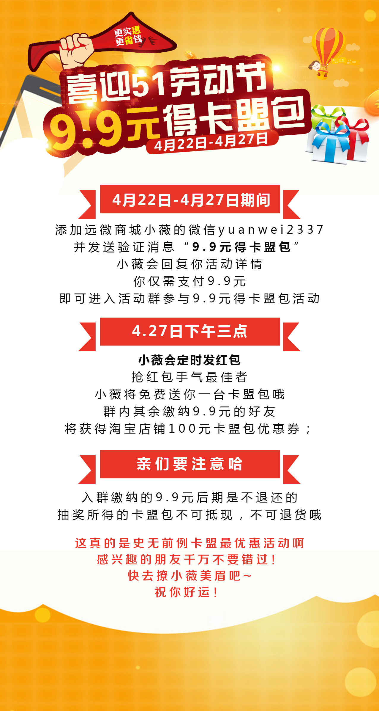 活动主题:喜迎五一劳动节,9.9元得卡盟包