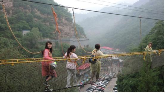 细雨不仅没有阻碍出游,还消却了初夏的热气,雨中出游倒也别有一番韵致。大家沿途不断赞叹大自然的鬼斧神工,品评修建者的匠心独具,还有同事对横架峡谷之上的“走钢索”比较感兴趣,玩了把“大冒险”。 大家一路开心向前,并纷纷于美丽、奇瑰的风景中留下了永恒笑脸,将快乐永恒的珍藏起来,欢快的笑声洒满了山谷。