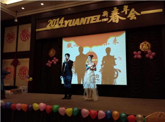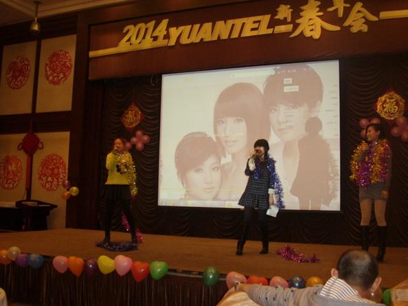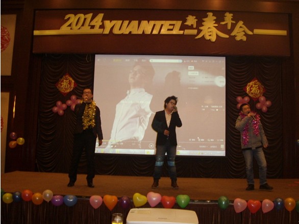 欢快、热闹、喜庆的新春年会由一首激励人心的《远特去哪儿》开始,“远特通信大家庭,兄弟姐妹一条心……”唱出了所有远特同仁的心声。接下来由研发部陈洪弟等同事带来的舞蹈《狐狸叫》轰动全场,让我们看到研发同事可爱、欢乐的一面;支撑部门合唱的歌曲《我相信》、《壮志在我胸》激励人心;通信增值事业部康超、回松、王陈静等同事表演的小品《梁山伯与祝英台》幽默十足,搞笑连连;客服、商务部美女伊燕立、康杰慧等带来的舞蹈《dancing queen》婀娜多姿、性感火辣;朱小明、马爽、杜长坡、张波等以及上海分部美女同事带来的歌曲,或悦耳动听、或深情专注、或激情四射、或铿锵激昂,各各唱功极佳,赢得台下阵阵掌声……